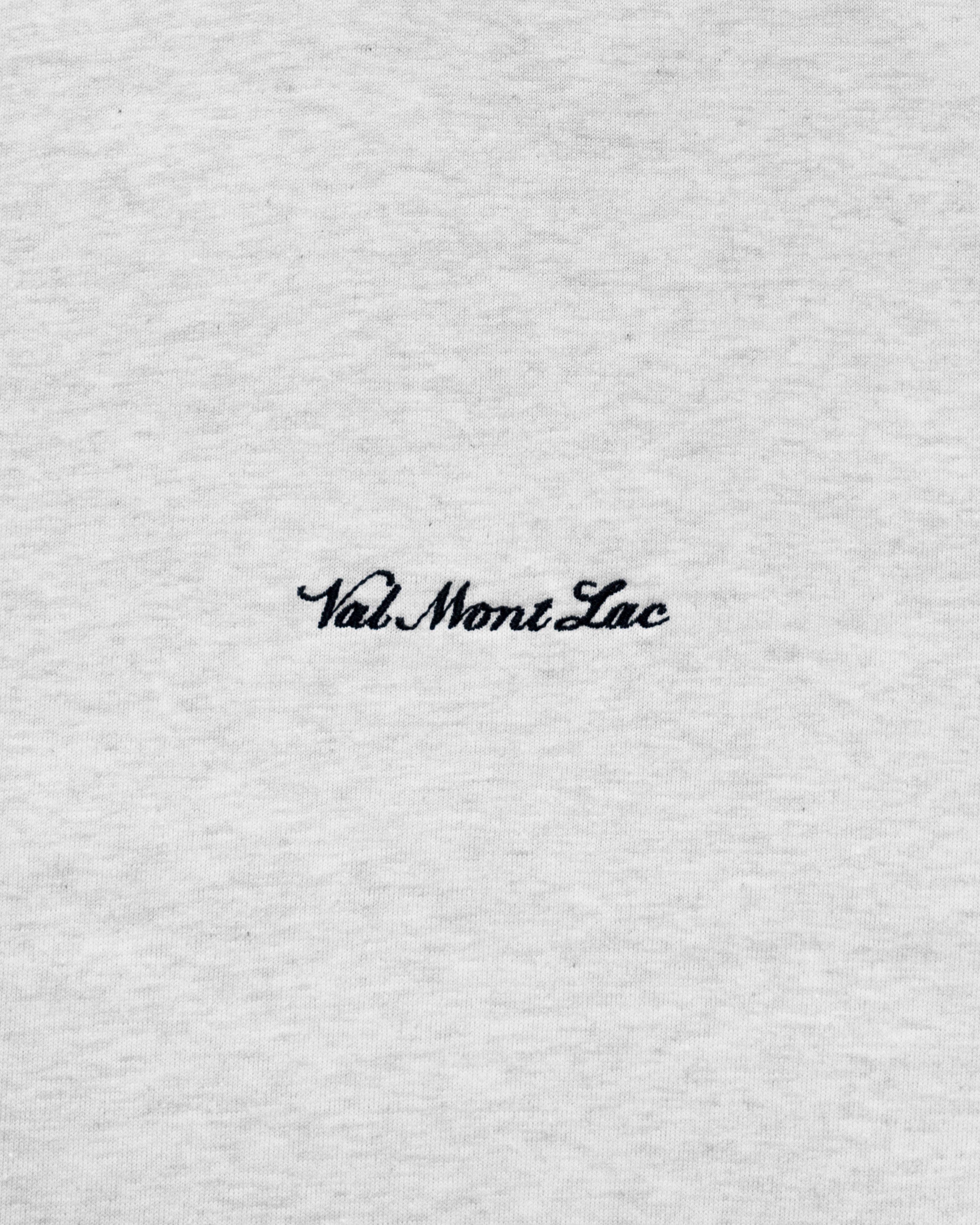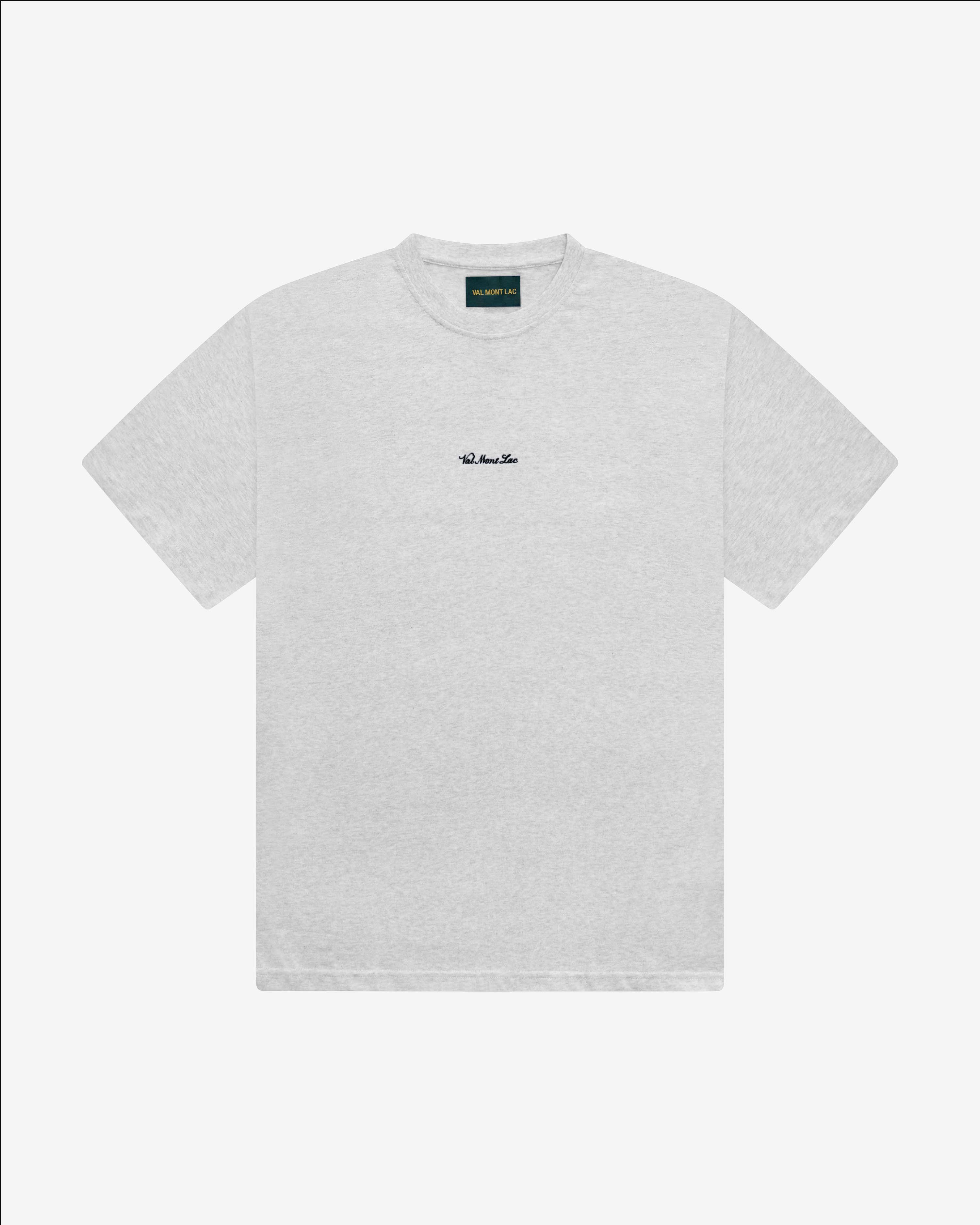 Classic Val Mont Lac T-Shirt made in Portugal. 240GSM fabric. 100% organic cotton. Embroidered script logo at center front.